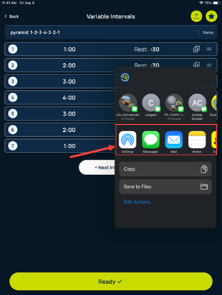 Notat til trenere: Du kan dele en treningsøkt med laget ditt, og deretter be dem om å dele resultatene tilbake til deg! Det var alt! En enkel måte å trene med venner eksternt og et nyttig verktøy for trenere!